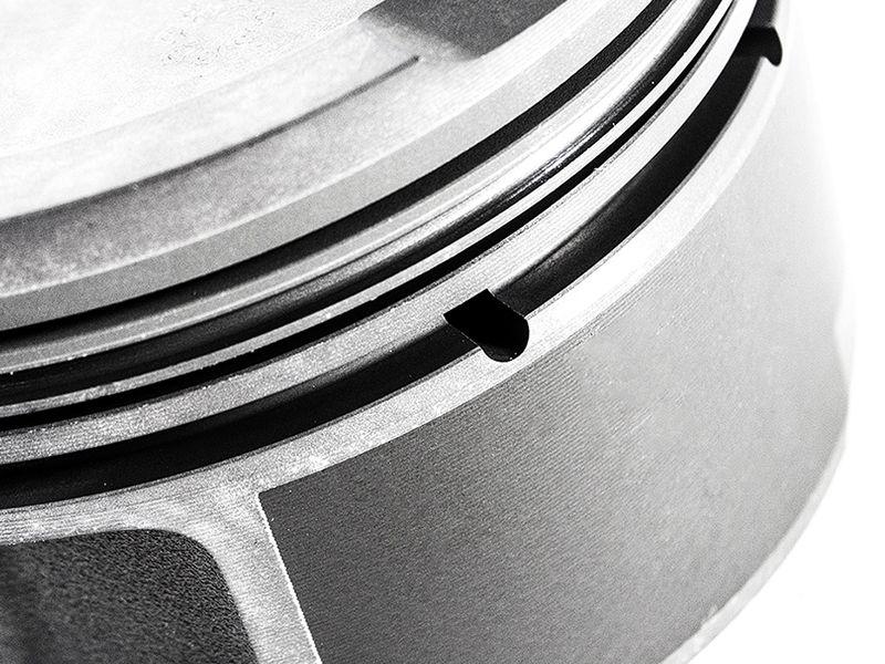 To maximize power output, the clearances between the rings and piston have been brought in very tightly to reduce blow by. This is achieved by hard anodizing the top ring lands, which prevents micro welding which could be caused otherwise.