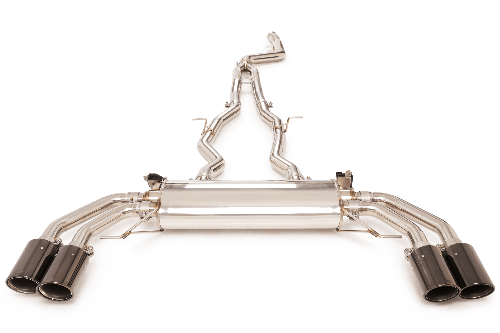 The Cat-Back Valvetronic System comes with a separate remote controller that gives you full control of the exhaust, allowing you to open and close the valves with a click of a button. You can also set it in auto mode for the valves to open at a certain rpm automatically. The Stone Valvetronic system is a plug and play system, and connects to your OBDII port, which can be installed within a few minutes.